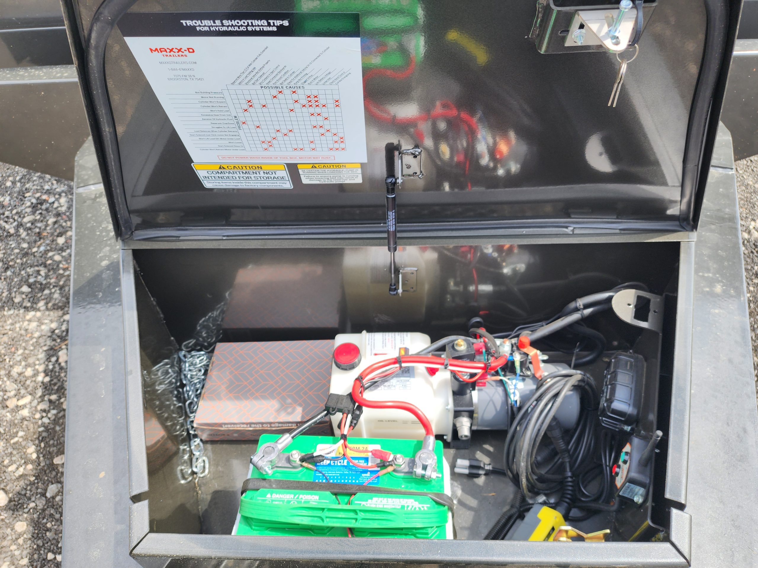 - Battery: Deep cycle battery for the hydraulic system