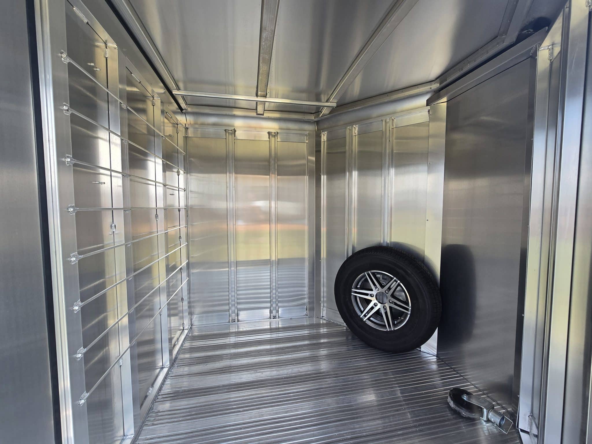 Fully aluminum construction: polished aluminum exterior panels and extruded aluminum, non-skid floor planks