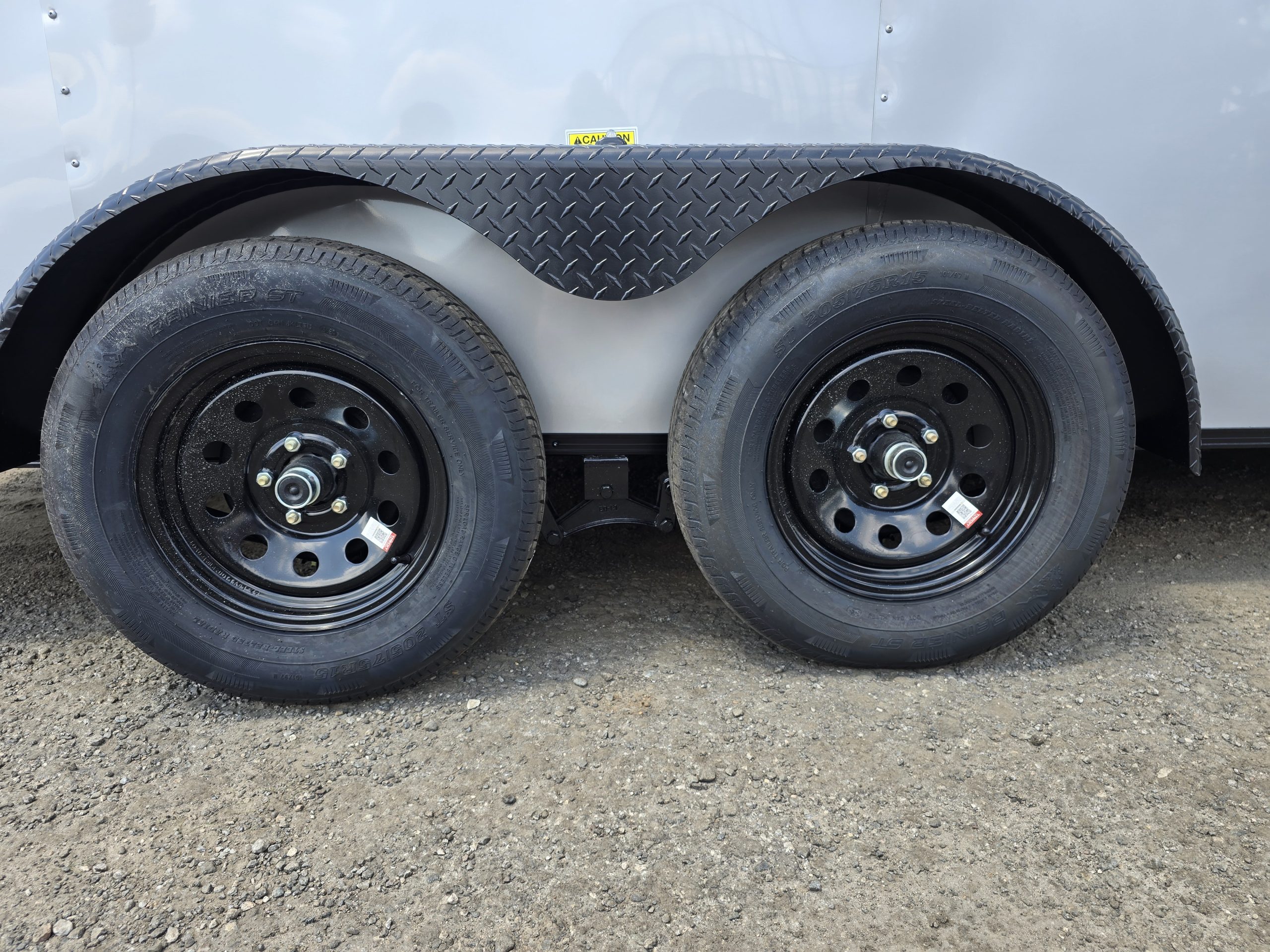 - White mod rims with ST205 15″ steel-belted tires.