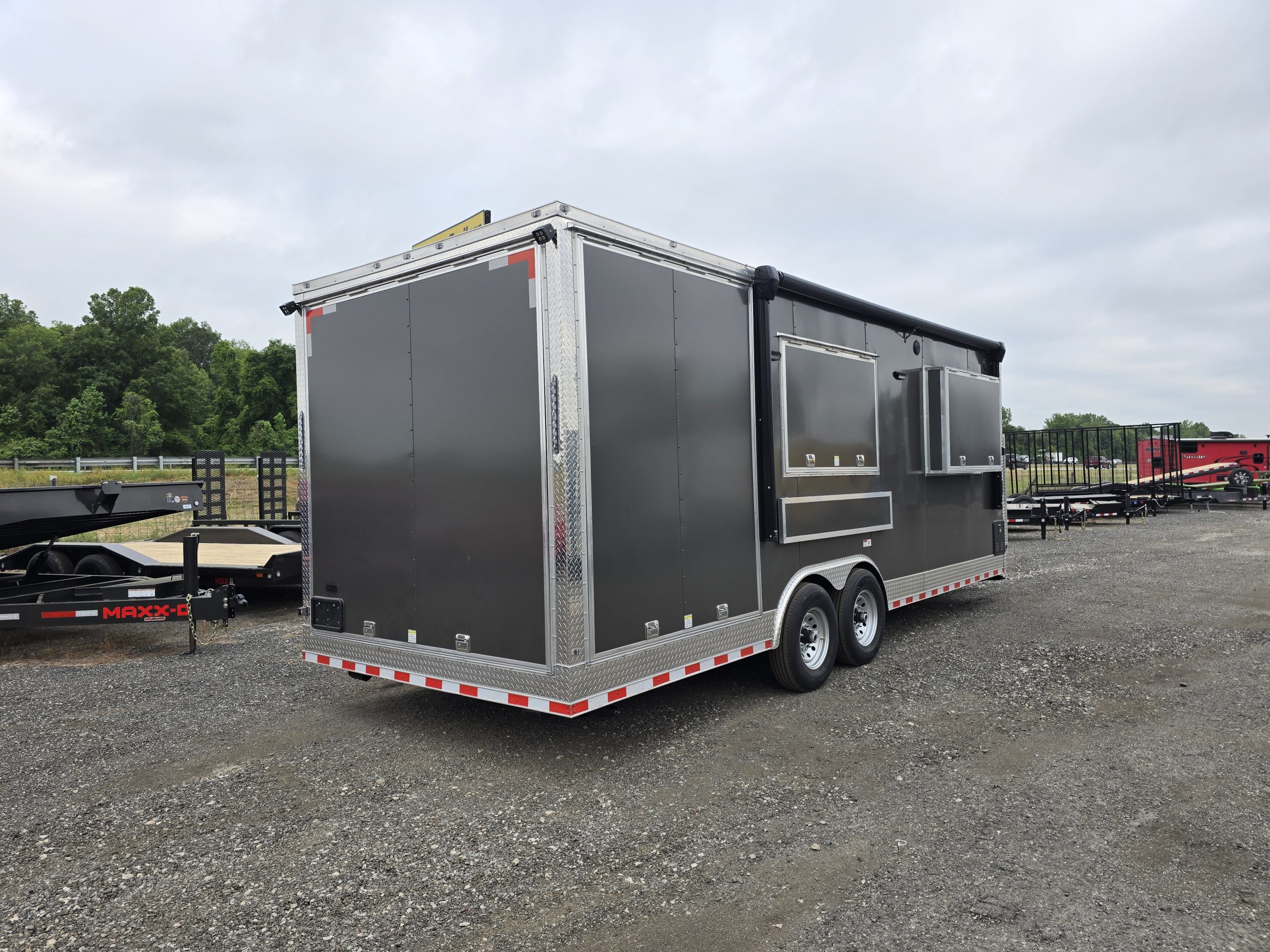 Take your mobile business to the next level with this Empire Cargo 8.5×24 Concession Porch Trailer, designed for serious vendors and event professionals. Packed with high-end features and built for functionality, this trailer delivers style, space, and convenience—all in one sharp-looking package.