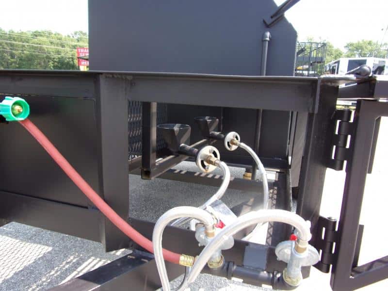 The Hog Box Bubba Grill smoker on a 6×12 utility trailer is designed for serious BBQ enthusiasts and catering events. With a gas starter in the firebox, double burners, and charcoal pan, this versatile smoker allows you to cook everything from grilled steaks to slow-smoked brisket. Its real wood-burning smoker setup offers authentic BBQ flavor, while the bat wing shelf and side storage make it ideal for large jobs.
