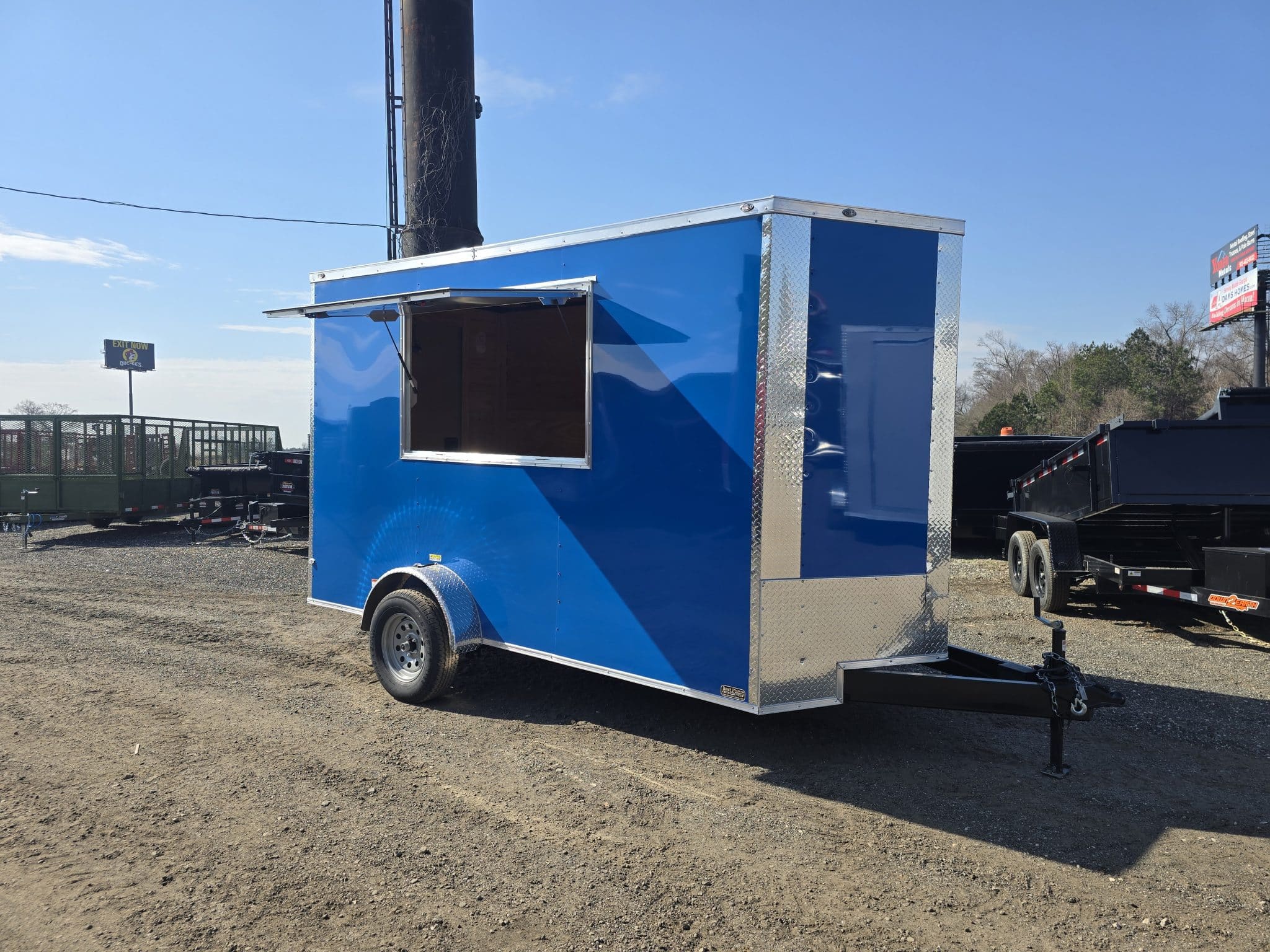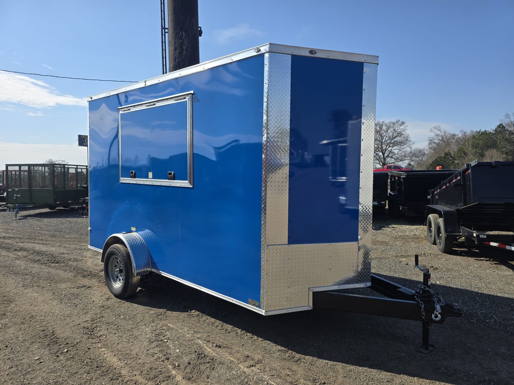 This Empire Cargo 6×12 enclosed concession trailer is a solid, versatile option for food service, mobile vending, or specialty business setups. The enclosed design provides a secure workspace, while the rear walk-through door allows for easy entry and exit when operating or setting up.